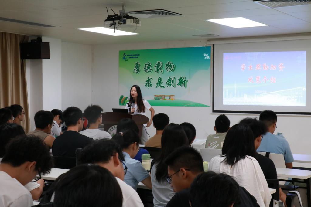 为打通信息壁垒,切实回应新生关切,9月12日上午,辅导员欧少珍在科技北楼401室为新生系统介绍了学校资助管理中心职能,深入解读奖助学金等项目的申请条件与标准,确保政策公开透明。同时强化感恩意识、诚信与励志教育,帮助受助学生树立正确价值观念,促进其成长成才。
