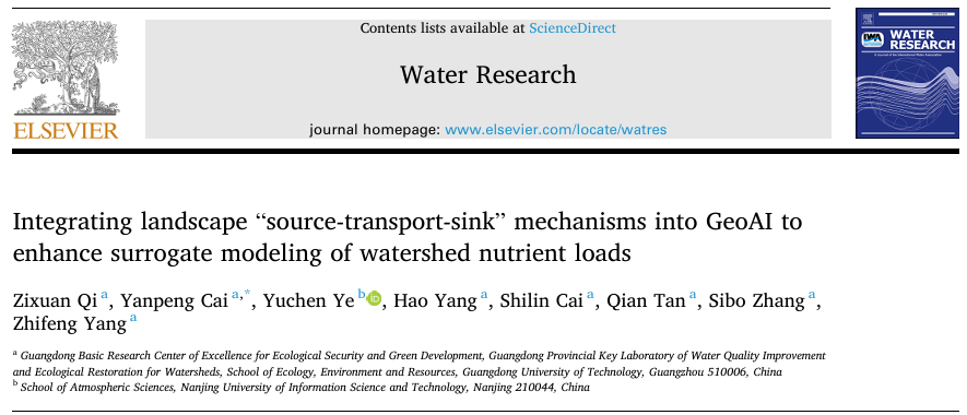 杨志峰院士团队蔡宴朋教授课题组在Water Research上发表题为“Integrating Landscape "Source-Transport-Sink" Mechanisms into GeoAI to Enhance Surrogate Modeling of Watershed Nutrient Loads”的研究论文。蔡宴朋教授为论文通讯作者,av影片直播
